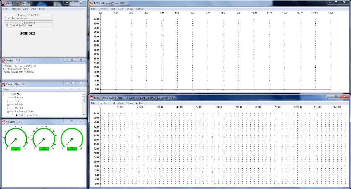 For those looking for maximum control over the timing and rev limits of the 6LS, MSD has the Windows based Pro-Data+ software. With Pro-Data+ you can plot timing curves based off of both RPM and Manifold Absolute Pressure (MAP) for vacuum or boost. You simply right click, add a plot, and drag it to the point on the table you want it to be, and you’re well on your way to creating your own completely custom timing curve. You can also set your desired maximum and minimum timing limits through out the curve by using the Data Editor Menu as safety precautions.