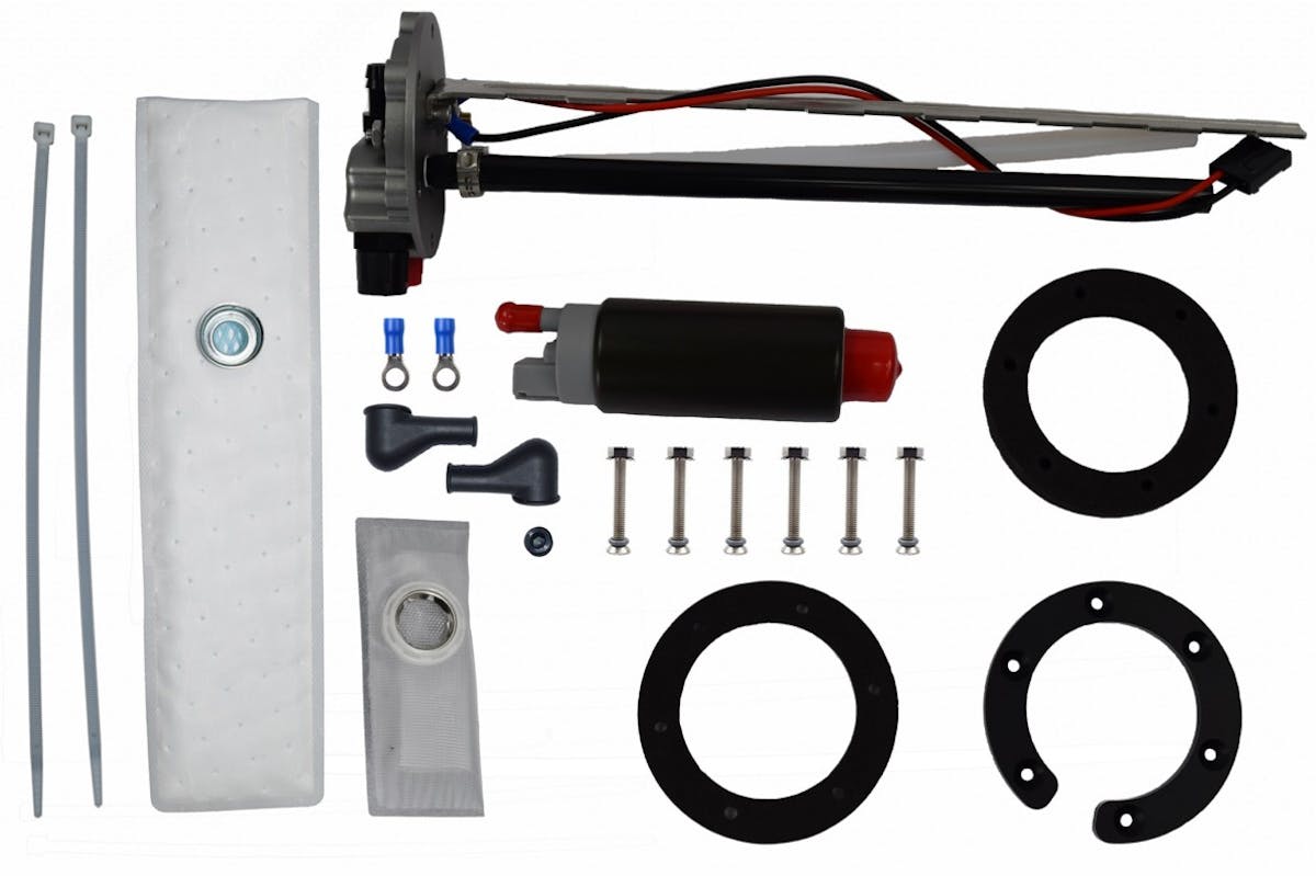 An external (inline) fuel pump system (PN: 50001), is also another option from FiTech. It’s a comprehensive EFI fuel system that includes a 255-lph fuel pump designed for engines making up to 650hp. The kit includes 40 feet of EFI-grade, 3/8-inch fuel hose for the supply and return lines, two billet aluminum fuel filters, a 60-micron pre-filter, a 30-micron post-filter, push-lock hose ends, and a mounting clamp for the pump.