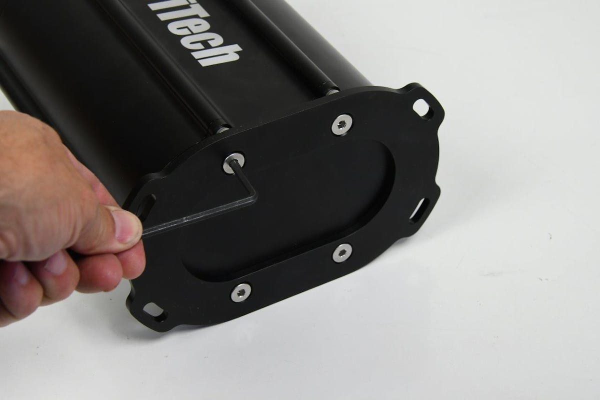 The Go-Fuel universal in-tank pump module combines the same 340-lph fuel pump found in the Force Fuel System, but the pump mounts to an in-tank hanger and installs in a factory tank. This installation requires cutting a hole in the tank. The hanger is adjustable for depths of 6 to 15 inches to accommodate most tanks with the supplied hardware.
