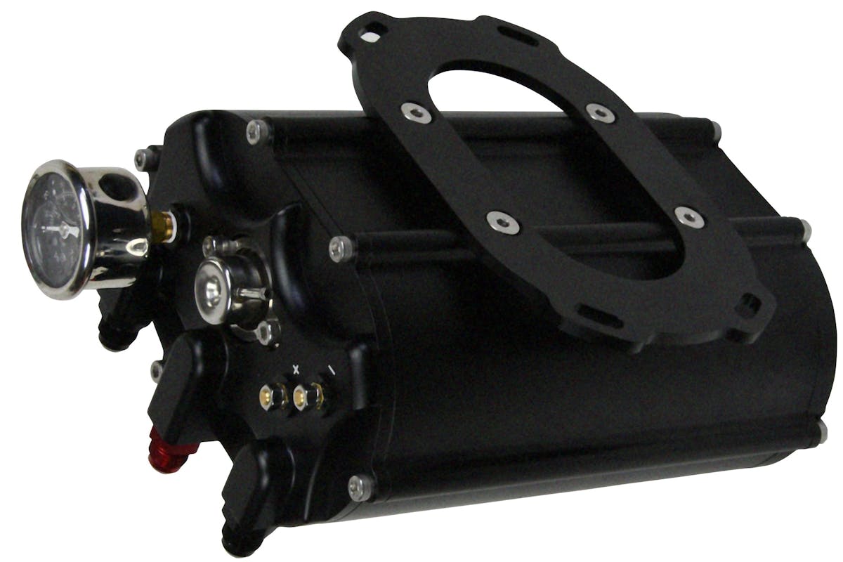 The housing includes a 340-lph, high-pressure pump, an integral regulator set at 58psi, and a serviceable 10-micron fuel filter. This EFI fuel system is designed to return excess fuel to the gas tank, so a fitting is included to install a return port in the fuel tank or fuel cell. FiTech also supplies -6 AN fittings, high-pressure fuel hose, and a liquid-filled gauge. And, it’s even designed to be compatible with E85, ethanol and methanol fuels, and it will push enough fuel to support 800hp on naturally aspirated vehicles using gasoline.