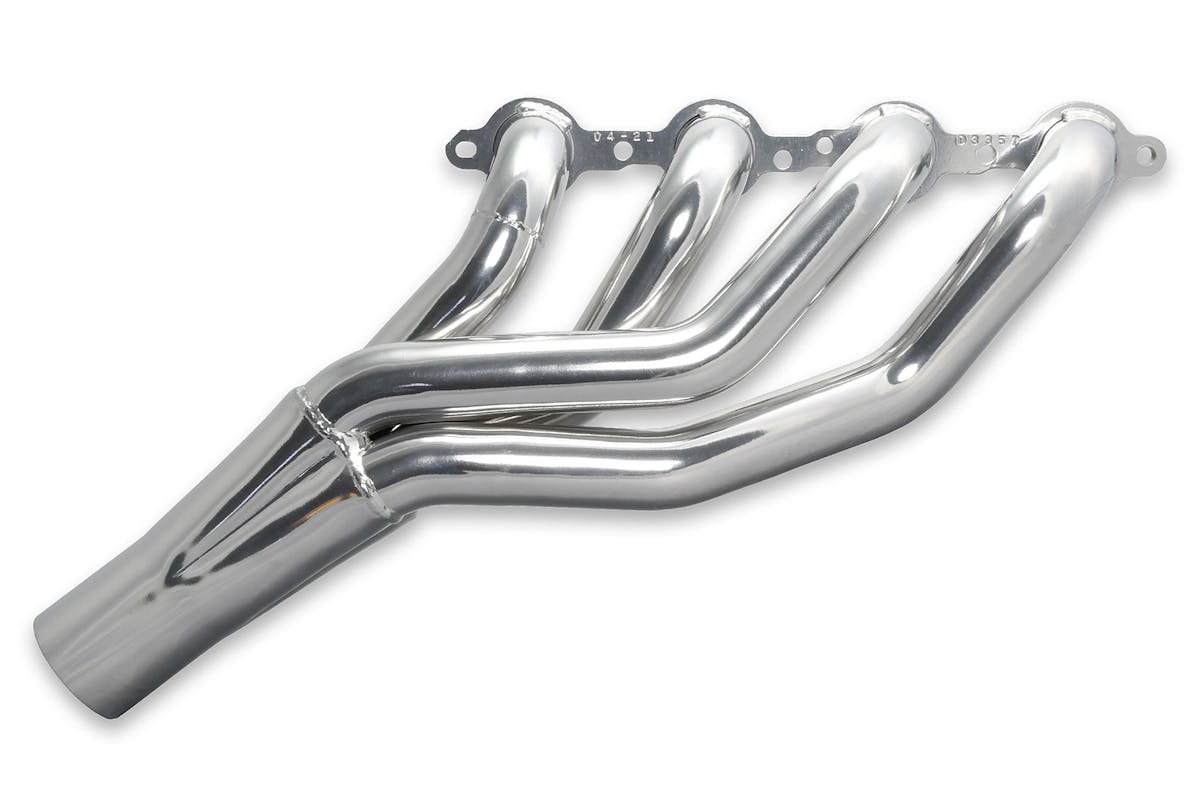 From the header flange to the collector, the design of the individual tubes is based on length and diameter. The length of each primary pipe is related to the engine’s desired RPM range. For example, an engine operating mostly in a lower RPM range benefits from a longer primary tube. A high-RPM engine benefits from a shorter-length tube.