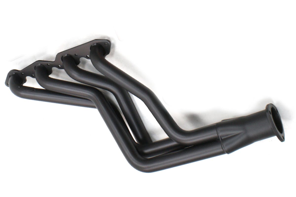 In all-out performance or racing applications, Lindfors notes that the mid-length header can also do well in a drag racing application. He contends that using header collector extensions protruding 18 to 20 inches beyond the collector itself will help with a lot of the reversion—the flow of exhaust gasses back into the combustion chamber when the downward movement of the piston creates a vacuum in the cylinder.
