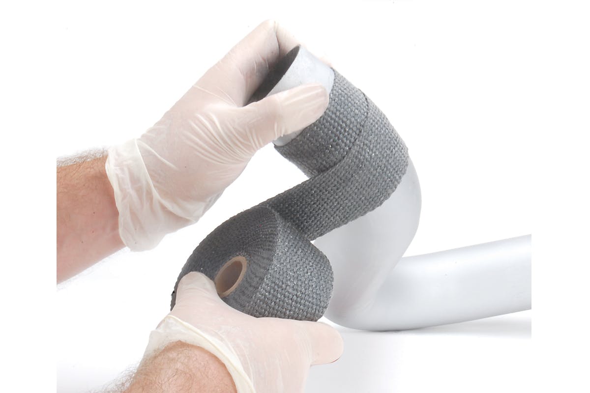 Header wrap can come in various materials, including woven ceramic from Moroso (left). You have a few choices from DEI, including coated fiberglass (center) or a pulverized lava rock (right) in the Titanium series.
