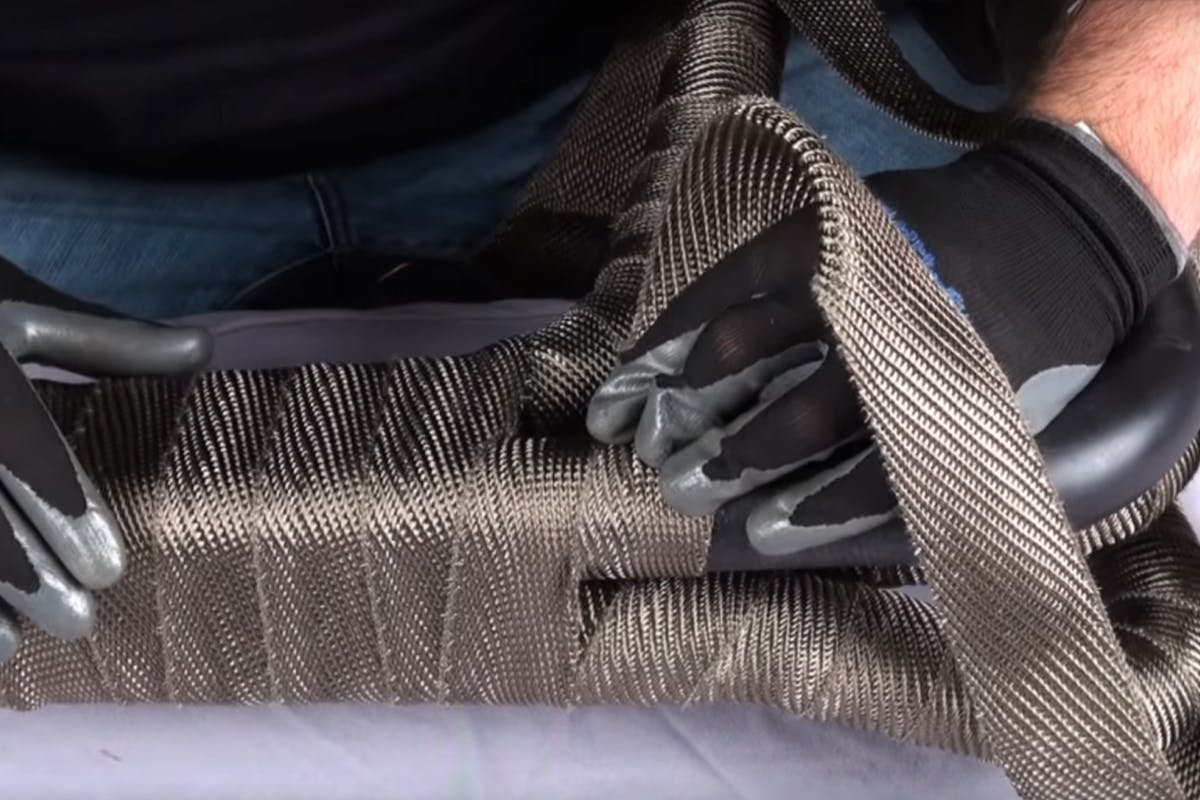 “We offer three basic material types: glass fiber, Titanium, and EXO,” said Mike. “Each has its benefits-to-cost ratio, with the glass fiber being the least expensive.” Those cost ratios increase not only in price, they also increase in heat protection. Mike continued, “Glass fiber is good for up to 1,200 degrees, while our Titanium wrap is good for up to 1,800 degrees. Our EXO wrap, which is designed for off-road use, is a glass fiber base, but it is inside a stainless-steel mesh sleeve.”