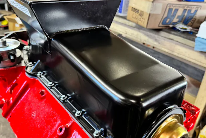 While our little 327 isn’t likely to see a 40hp bump, every bit counts. More importantly, it simplified the install and eliminated the guesswork. No trimming, no stacking gaskets, and no worrying whether the crank would slice through an aftermarket tray.