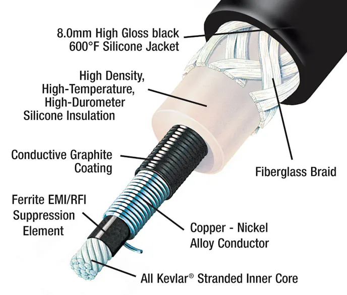 Under the outer layer is a braided material — usually nylon or fiberglass — which adds strength and helps minimize EMI. The material underneath the braided layer is usually a dense, heat-resistant silicone insulation. The heart of the wire is the core. Typically, the conductor core in plug wires has carbon-impregnated fibers. These could be nylon or Kevlar.