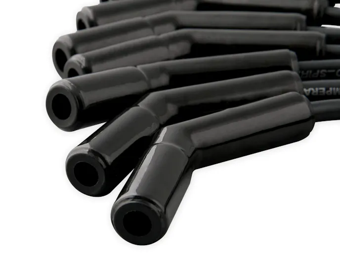 While silicone spark plug wire boots are fine in most applications, if you’re running headers, you have surely experienced burned boots. It’s a fact of life for hot rodders — or at least it was. If you’re tired of melted plug-wire boots, Accel has the cure. The Extreme 9000 plug wire kits utilize ceramic boots that will withstand temperatures up to 2,000 degrees. The boots are available in straight, 45-, or 90-degree configurations. Were told the ceramic coating acts as a heat mirror, reflecting infrared energy and heat away from the plug boot. Finally, it’s engineered to resist flaking and peeling.Selecting the correct plug wire for your application is not a difficult task. If you are running a car on the street as a daily commuter, then carbon core wires will be fine. Add any upgrades in performance, however — especially in the fuel or ignition system — you will probably want to consider a spiral-wound wire. Again, solid core wires will work fine for non-EFI-equipped race cars when using a magneto ignition system.