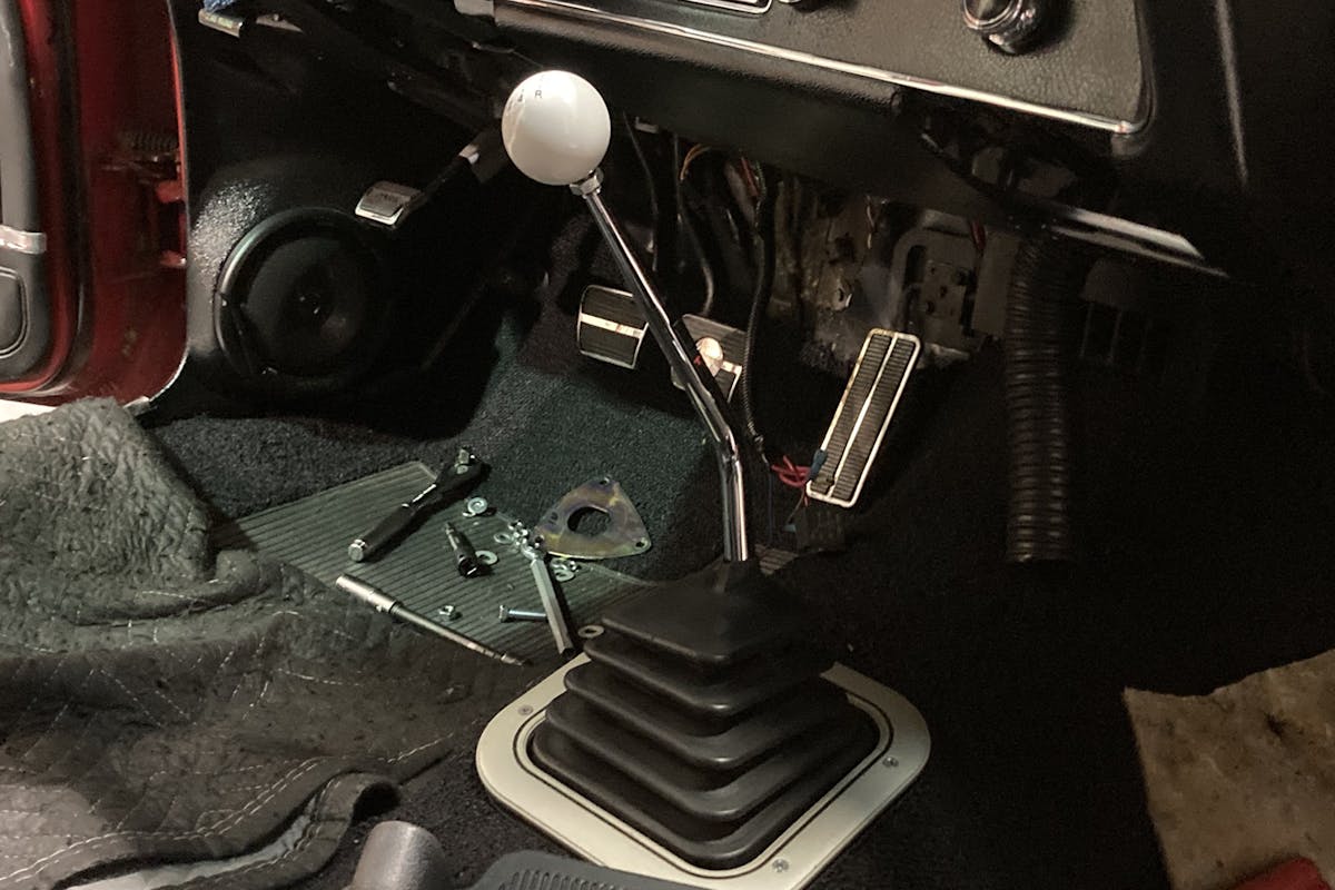 If your car is not equipped with a four-speed, you will need to modify the floor by installing a reproduction four-speed hump. Yes, I said there would be no cutting, but if your car currently has an automatic and you’re switching to manual, you will need to cut the floor and add the hump. Since you would need to do this if switching a factory four-speed, to me, it’s a wash.