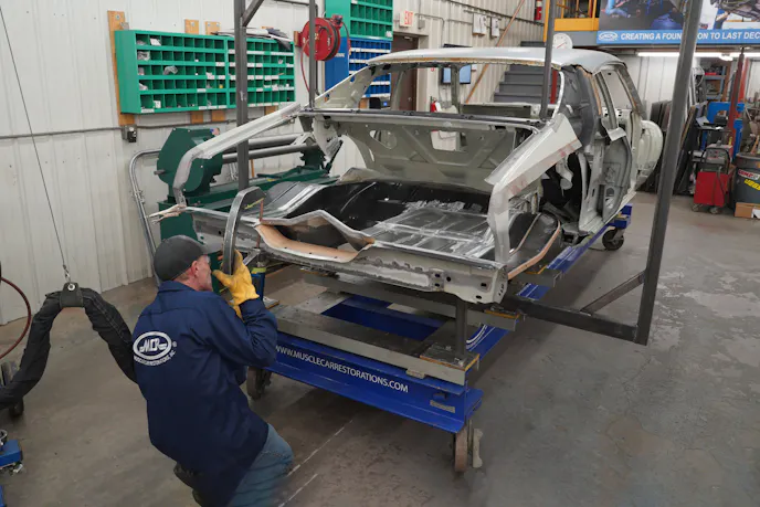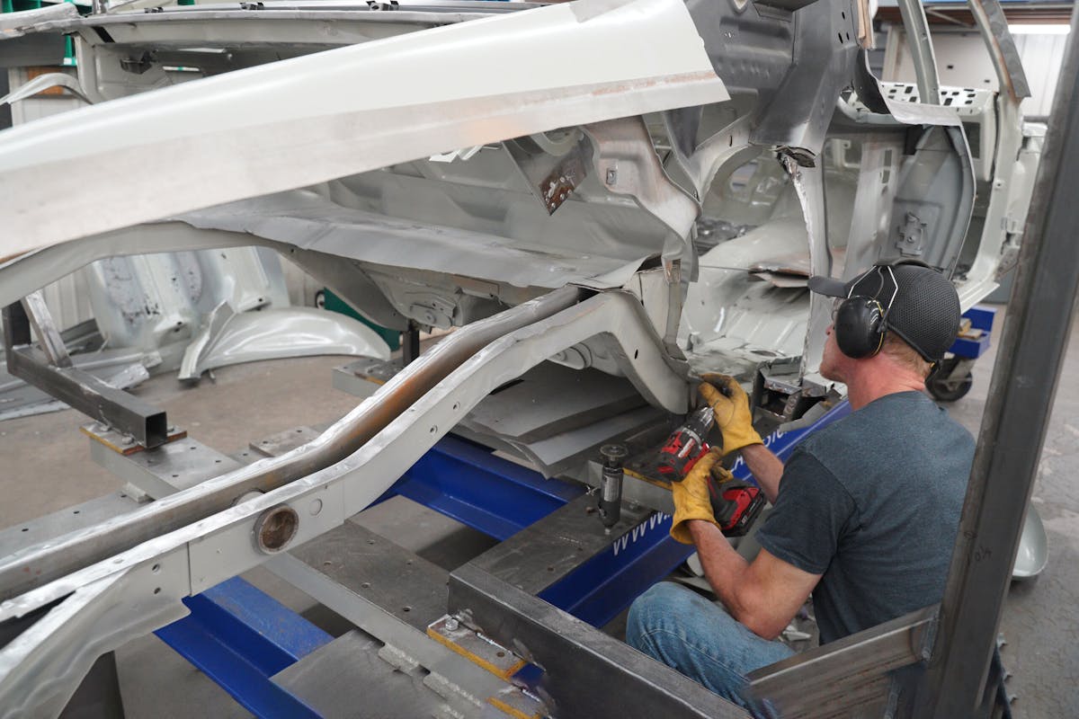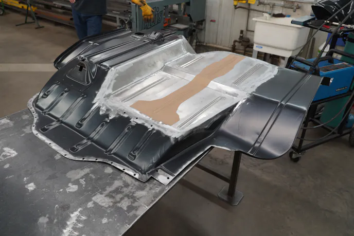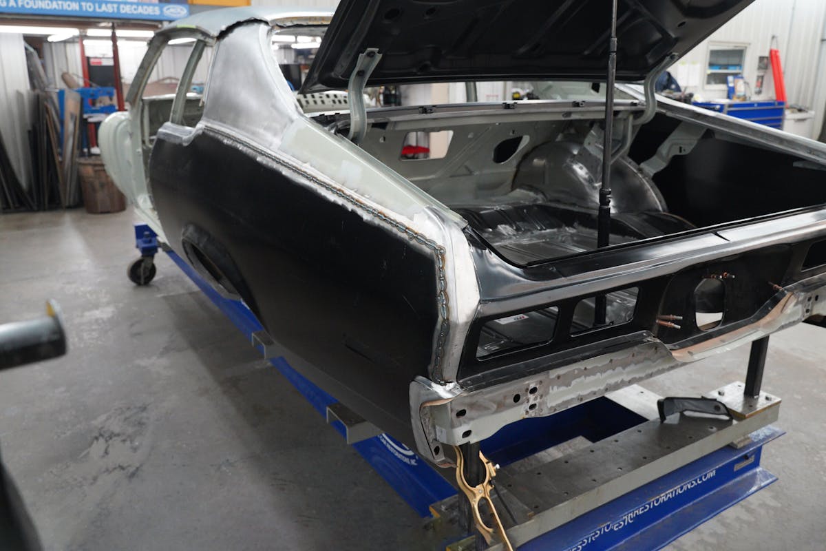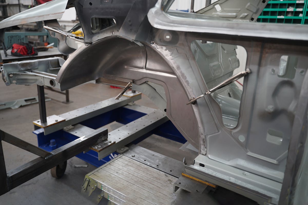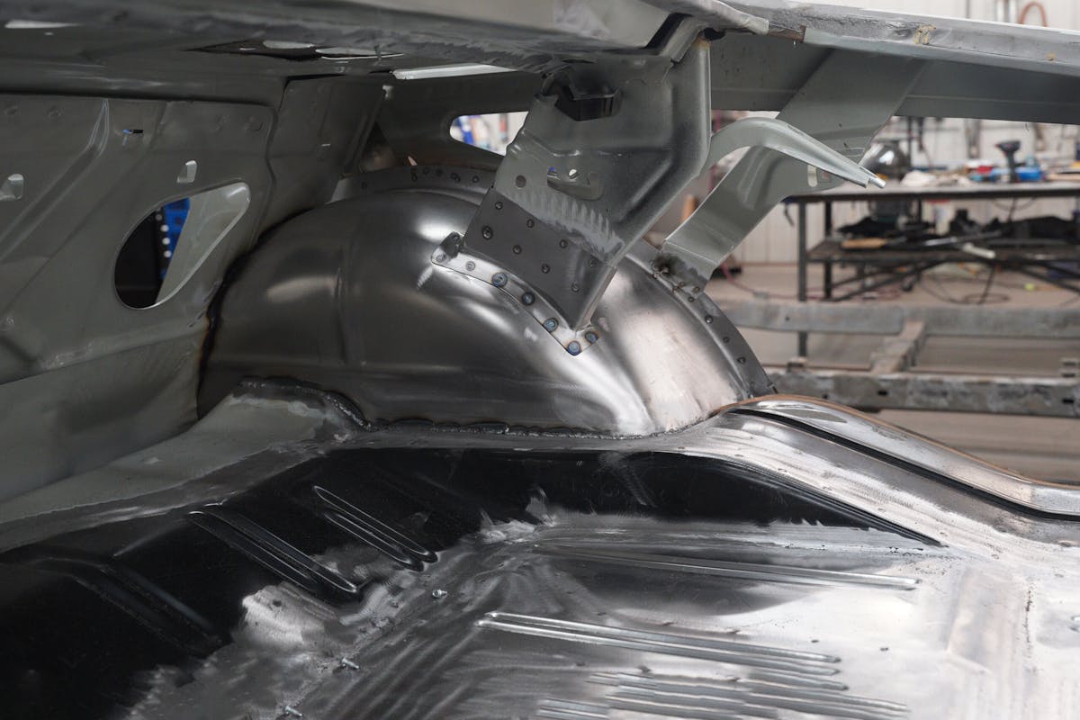 As the team finishes welding up all the seams and joints on the new mini-tubs and trunk floor, the focus turns to sealing up the rear portion of the body by installing new quarter and taillight panels. Of course, the finishing touch is the new trunk lid, which is an integral part of making sure everything is aligned properly, but that also uses bolts and has some adjustment. Welds are forever.