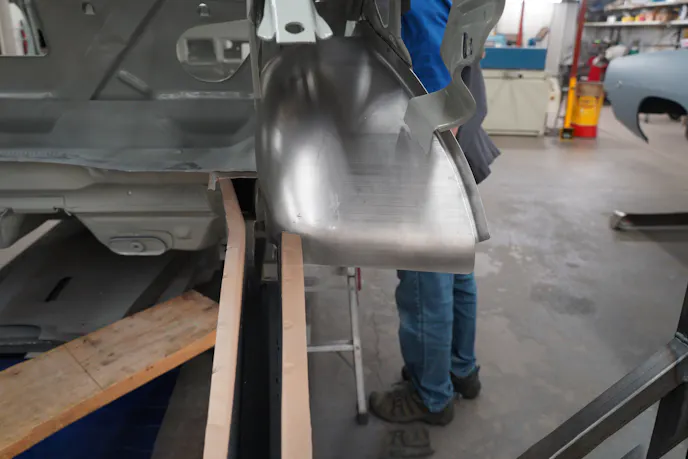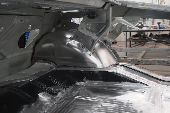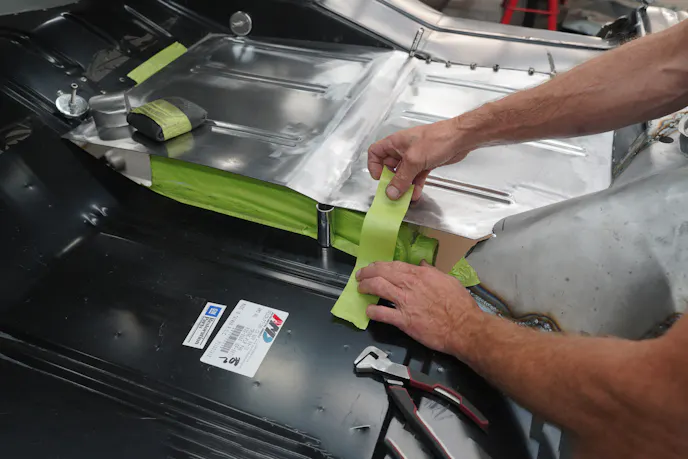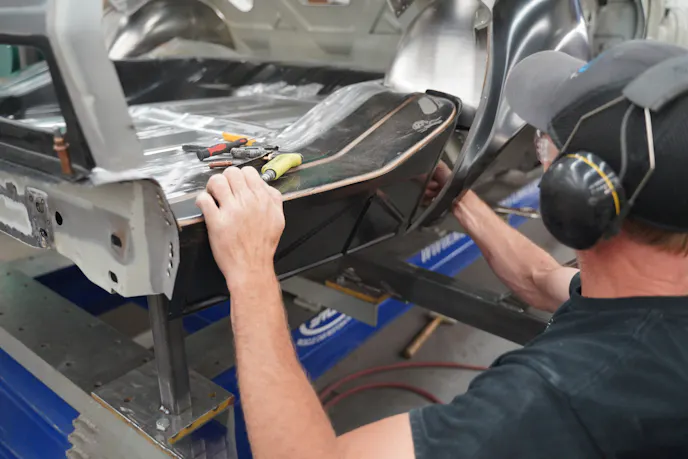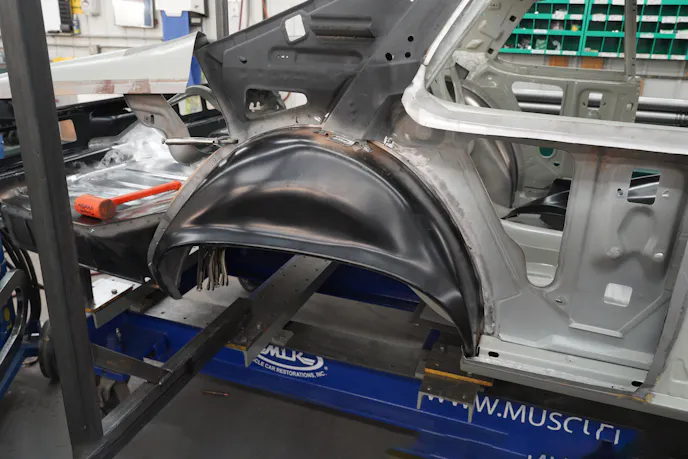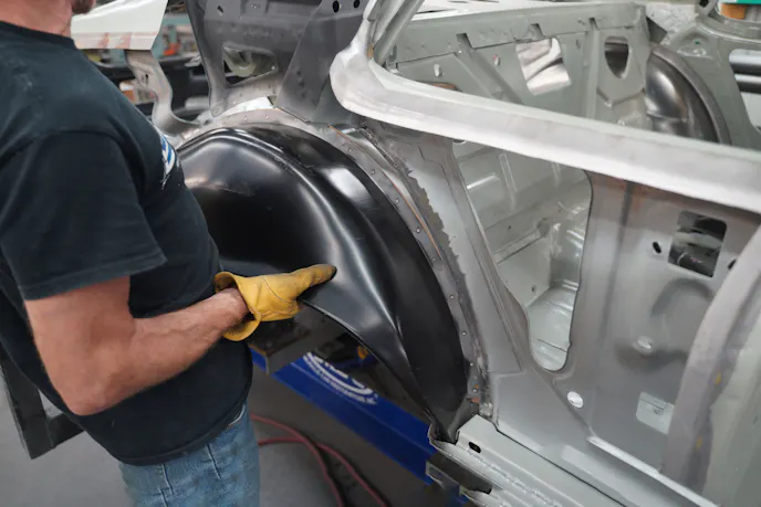 Instead of going in with a firesuit and a chop saw, the craftsmen at MCR take care to keep as much of the OEM mounting areas for the inner and outer wheelhouses, cutting only where clearance is needed. This allows them to join the panels in very much the same way Chevy did, with a minimum of fabrication and an OEM appearance.