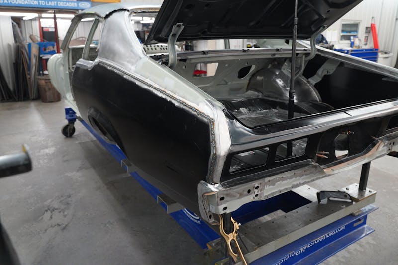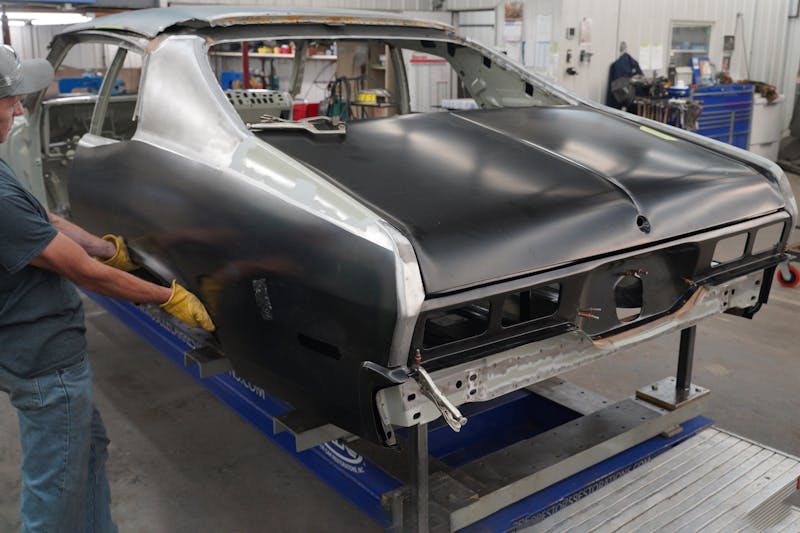 With both quarter panels welded in place and the trunk and taillight panels fitted to the vehicle, this once-rusty hulk of metal is starting to look like a 1973 Nova again. With the added rigidity thanks to the trunk floor and quarter panels, and the upcoming addition of the roof panel, this body can soon be removed from the frame table and stand under its own weight once again.