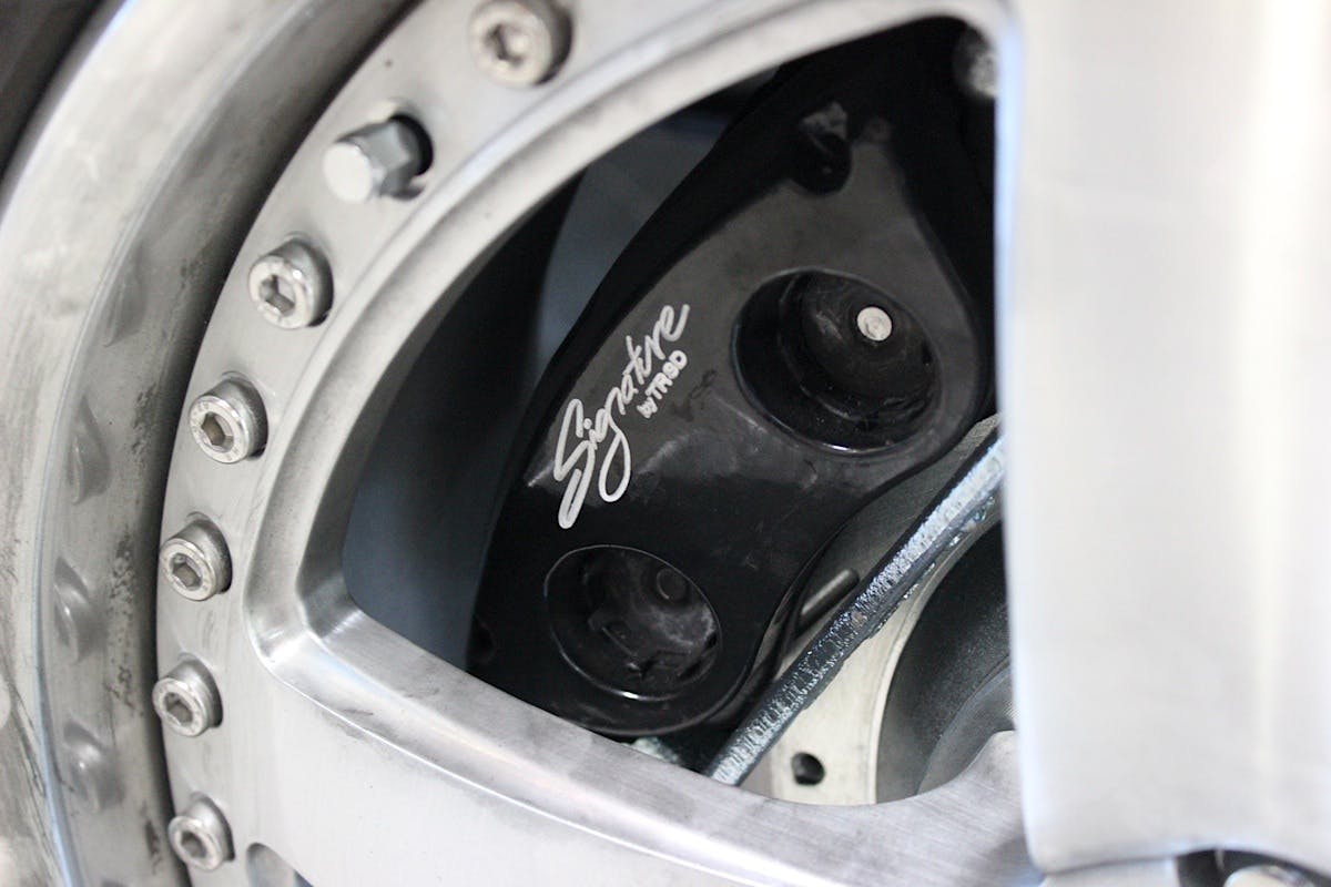 This is accomplished with their machined aluminum hubs, which hold massive 13-inch rotors in the front and 11.65-inch in the rear. “The front calipers are dual-piston and made from cast aluminum, which is modeled after a 1994-2004 Mustang Cobra,” continued McClure. This means that not only are the brakes a proven and well-designed system, but we can easily go to the local auto parts store for rotors and pads in the future.