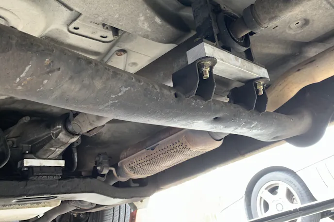 Raising the carrier bearing also changes its relation to the transmission. JTR includes a 3/4-inch shim to place between the transmission tailshaft and its mount to realign all of the driveline angles to prevent unwanted vibration or wear. This is also a good time to replace that worn tailshaft mount if needed.