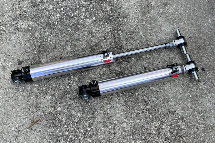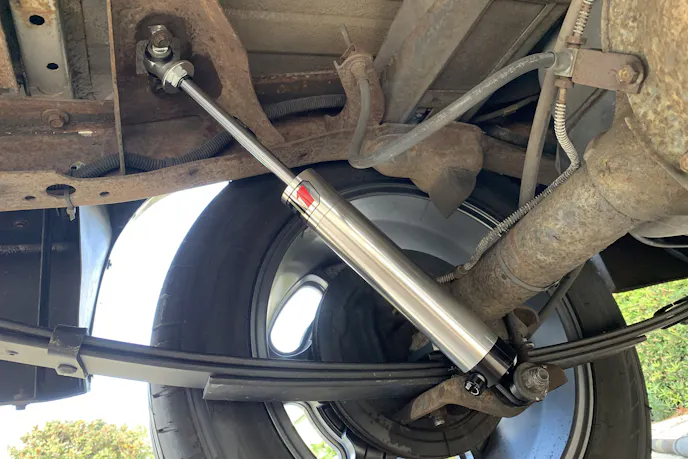 With the rearend snuggled atop those new leaf springs and angled shims, we secured everything with our reconditioned U-bolts and lower shock mount plates. From there, installing the new QA1 shocks was pretty straightforward, making sure the adjustment knobs were facing where we could get to them easily.