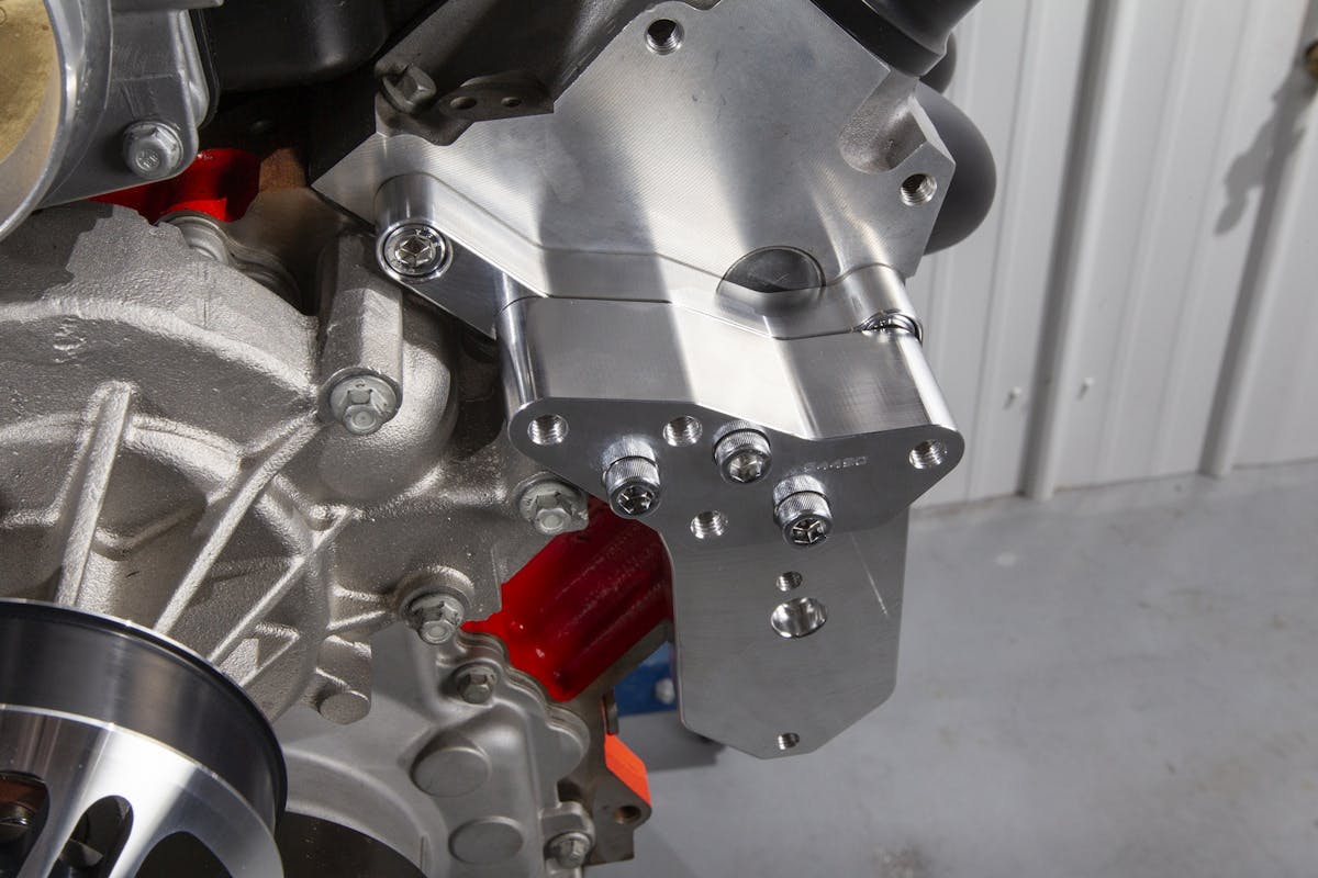We were curious about how an install would go and how well the finished kit looked, so we decided to see for ourselves. The Redd brothers were nice enough to allow us access to the Concept One facilities to see one of these kits first hand. The kit is supported by a compact bracket system that works in conjunction with a small SD-7 air-conditioning compressor, aluminum power-steering pump with plastic reservoir, 165-amp Powermaster one-wire alternator, the required pulleys, belt, and a Tuff Stuff water pump. Although this is a no-bling Driver Series, upgrades are available.