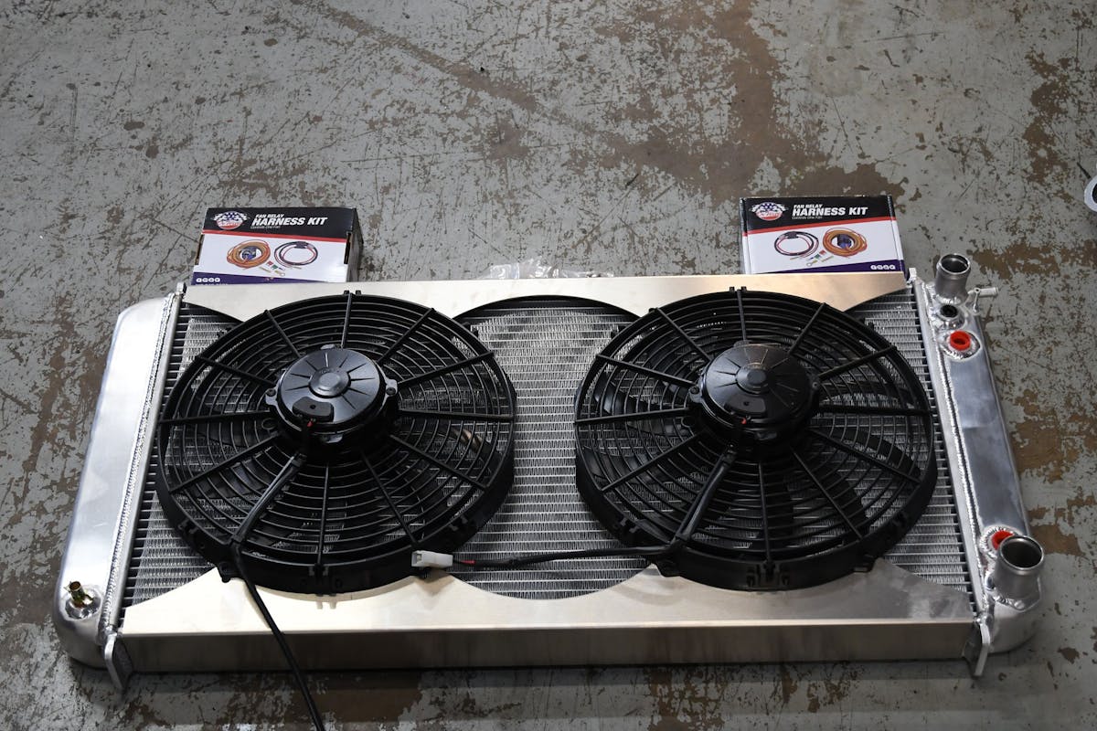 For cooling, we ordered BRP Hot Rods’ radiator and fan assembly. The aluminum radiator is manufactured by DeWitt’s, a trusted name with a long history of direct-fit radiators. Two SPAL electric fans will keep the necessary airflow whenever necessary and the BRP kit allows easy mounting and wiring of the entire cooling system.