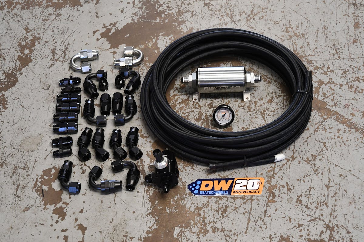 In the midst of all of this commotion, we snapped the factory plastic fuel line, which forced us to address the fuel system. This made for a “Significant Opportunity for Improvement” since we plan on much more power than the factory fuel system was designed to feed. To remedy this issue, we hit up DeatschWerks for fuel lines, a regulator, and fittings to run a new fuel line from the tank to the engine. There’s also now a DW400 in-tank pump to supply enough fuel to the engine under spirited driving.