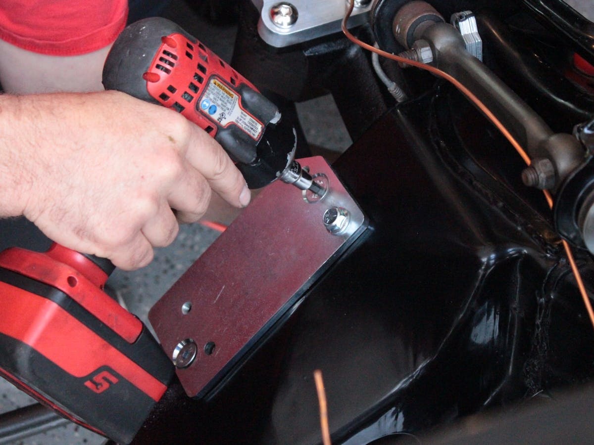 The engine mounting points with this kit move the crossmember-mounted pads slightly rearward, hence the reason for the frame mounted adapter plates. We did learn that the OE mount did need some minor trimming in this application. A small corner of the mount was removed.