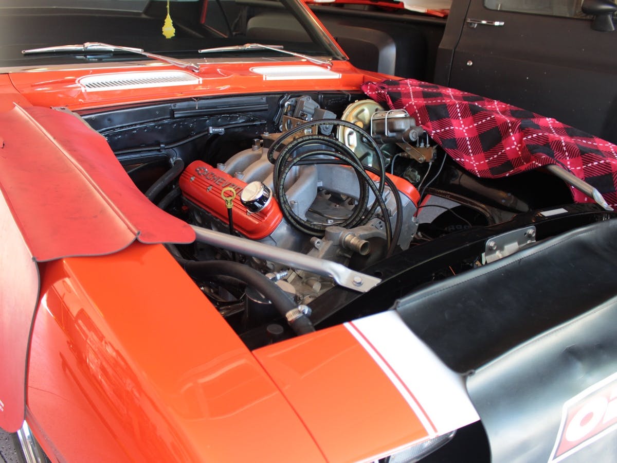 The 750 cfm carburetor is the perfect size for this LS7, and topped with a 14-inch round air cleaner, the engine looks right at home in the classic Camaro.