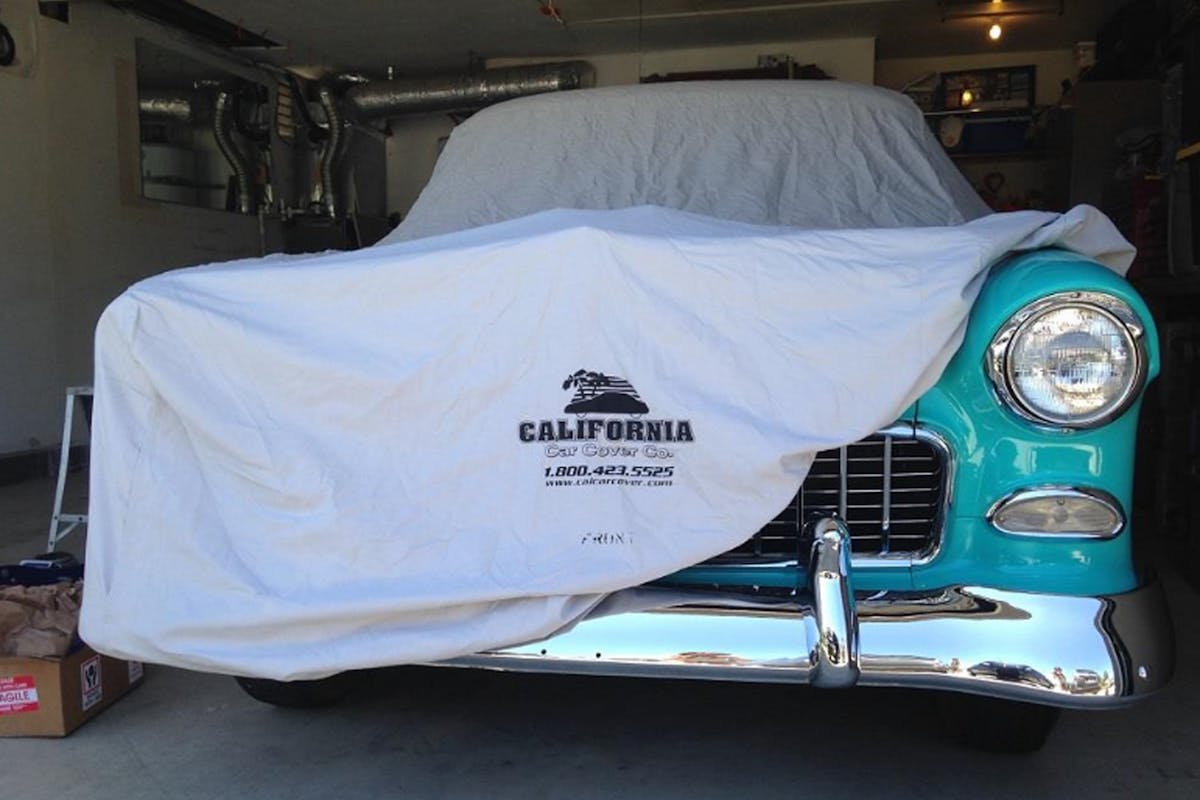 “California Car Cover Co. sells one we use,” Oeste says. “It’s almost like a fleece-lined Spandex material. It’s really soft, and it stretches. You almost kind of fling it over the car and twang it down to the four corners of the bumpers.”