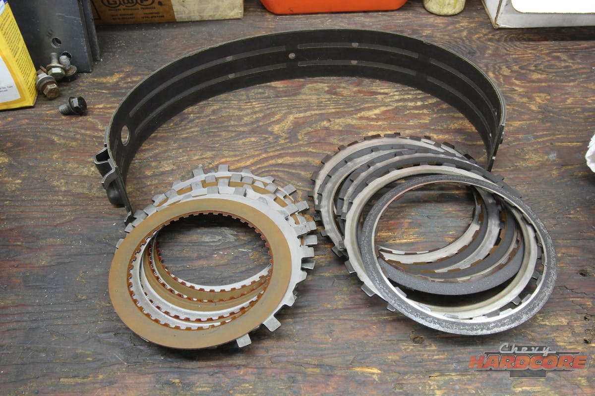 The scorched 3-4 clutches (right) are what typically fail in a 700R4 if the TV cable is not adjusted properly. Thousands of innocent 700R4’s have died because of poor TV cable tuning.