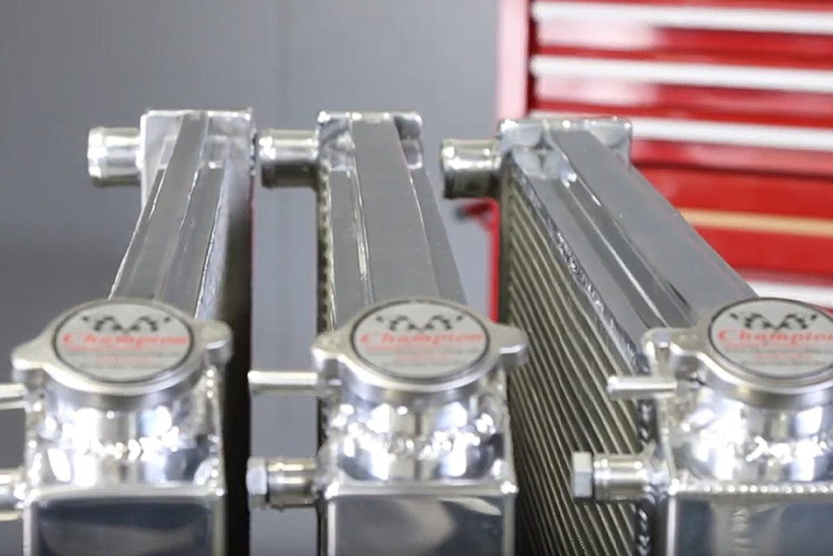 Many companies, like Champion Cooling Systems, have found that a three-row — or even a two-row radiator with one-inch tubes — will perform very well. The trick is to get the coolant to flow through the radiator and spend enough time in the core to be cooled, either by the fan(s) or the air forced through it while driving.