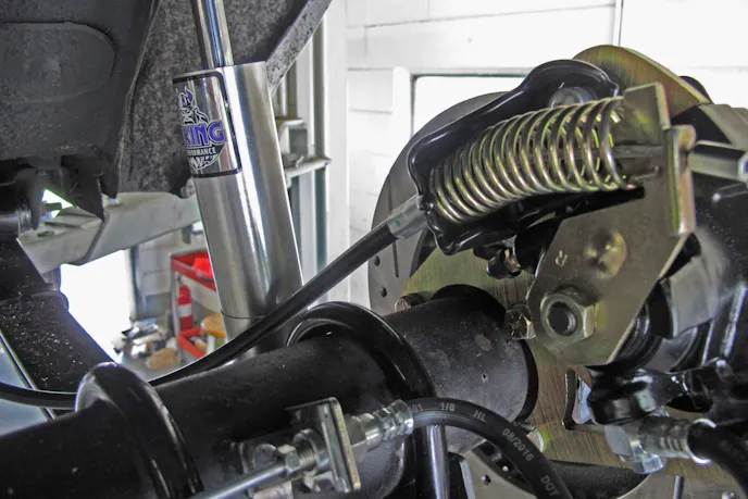 We recommend 350-lb front springs for an all-aluminum LS engine, 450-lb for small-block Chevys, and 550-lb for big-block Chevy engines. – Javier Nunez, CPPThe CPP kits are available in “stages.” Stage I includes coils springs for the front that lower ride height of the frontend, high-performance sway bars, and gas shocks. The Stage II kit adds the adjustable coilovers for the front, and Stage III will get you CPP’s award-winning MCPV-1 master cylinder and their front and rear disc brake kit. Aaron decided that since he was upgrading, he might as well go all the way, and ordered the went for the Stage III kit.