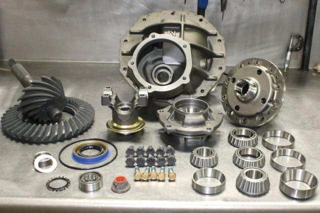 While the housing moved to the steam cleaner, simultaneous work began on the rearend’s third member. Currie’s longtime third member assembly pro, Ruben, had the parts laid out and ready to go. Ruben is a veteran of project builds for magazines with just about every current magazine that has done a Currie 9-inch rearend featuring Ruben’s hands and work.