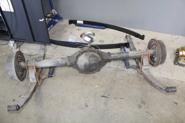 Arriving at our garage, the crew pounced on the new rearend, giving it a quick touch up paint job on the axle tubes. We have an idea of what the final paint color of the car will be, so we picked a complimentary color to highlight the rearend.