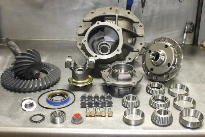 While the housing moved to the steam cleaner, simultaneous work began on the rearend’s third member. Currie’s longtime third member assembly pro, Ruben, had the parts laid out and ready to go. Ruben is a veteran of project builds for magazines with just about every current magazine that has done a Currie 9-inch rearend featuring Ruben’s hands and work.