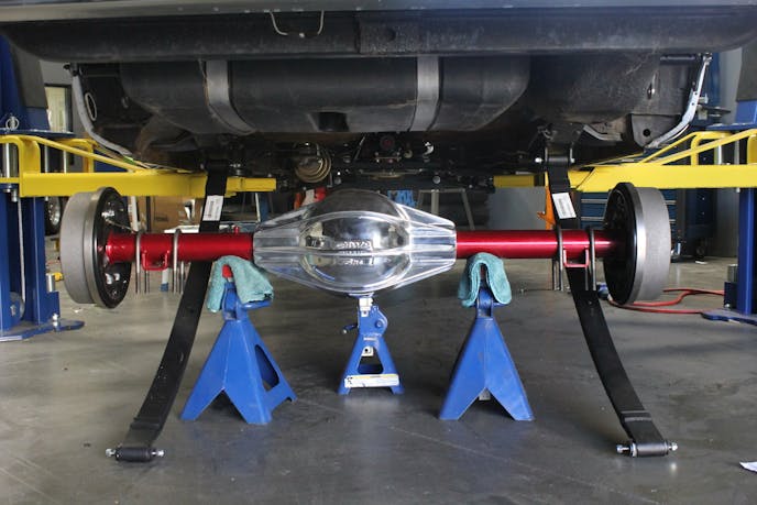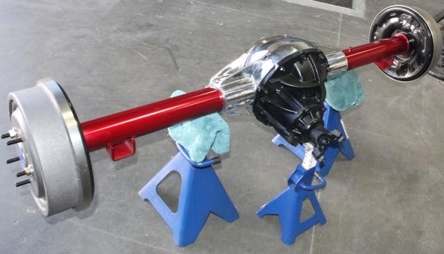 Arriving at our garage, the crew pounced on the new rearend, giving it a quick touch up paint job on the axle tubes. We have an idea of what the final paint color of the car will be, so we picked a complimentary color to highlight the rearend.