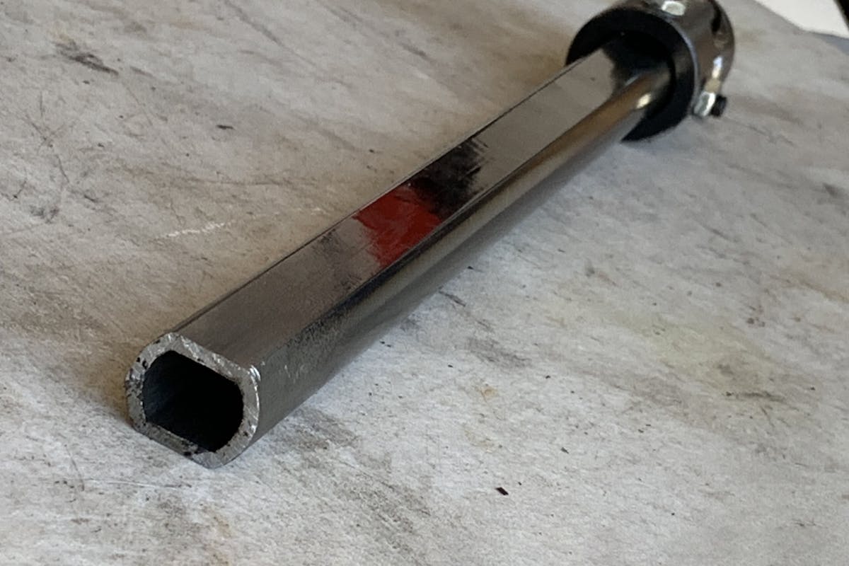 We ordered enough 1-inch DD tubing so we could cut our shaft to the desired length. Since the DD tubing overlaps the shaft coming from the column, the exact distance to cut isn’t critical. When measuring, just make sure there is enough overlap between the two shafts for a sturdy connection and the shaft isn’t too long to interfere inside the column.