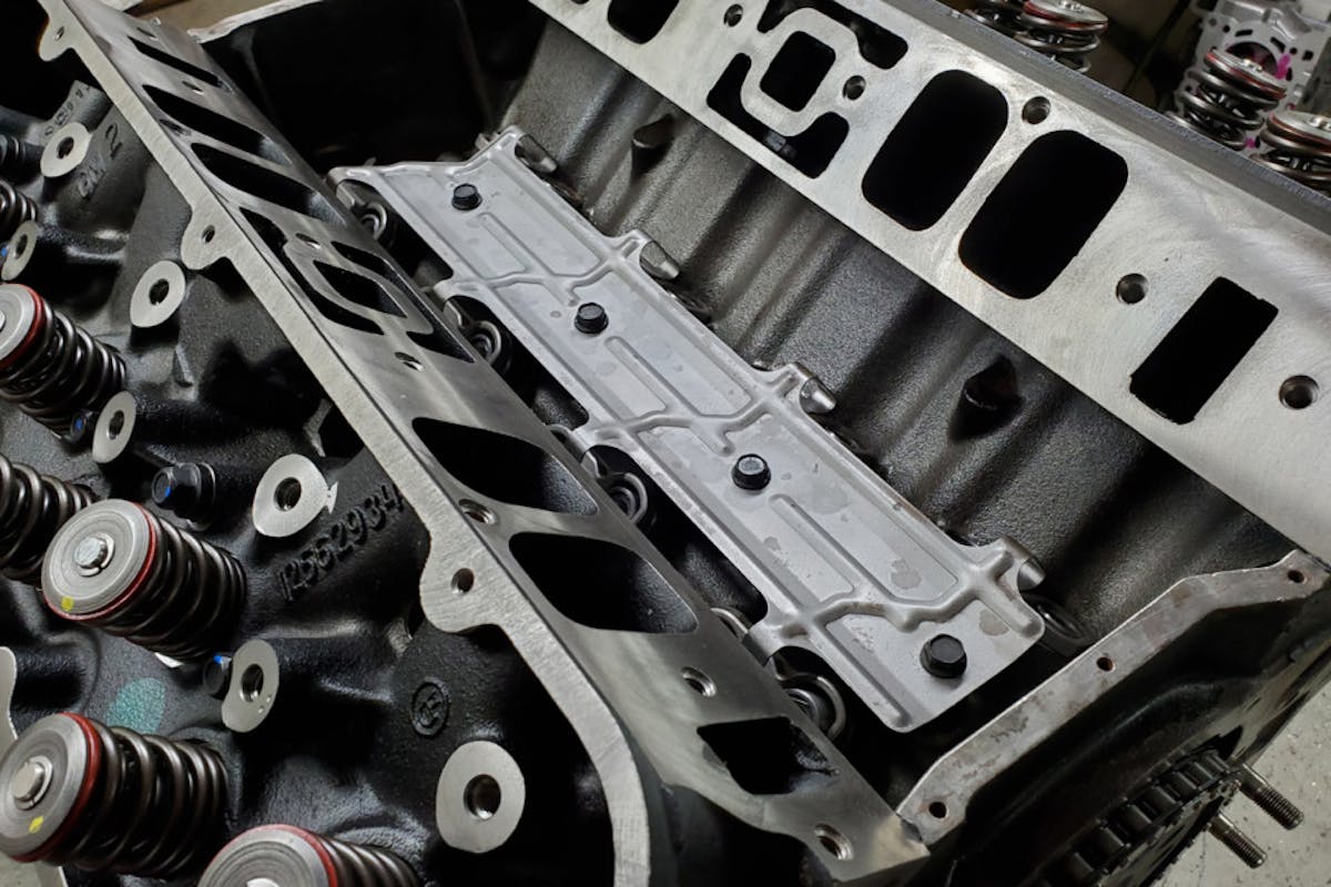 To replace the corroded original heads, Junior ordered a pair of fully-assembled GM cast-iron replacement heads (PN: 12562920), designed to fit Gen-V and Gen-VI big-block engines. These are rectangular-port heads with 2.18-inch intake valves, 1.88-inch exhaust valves, and 118 cc open combustion chambers. Port runner volume is 325 cc for the intake, and 110 cc for the exhaust. Other than double-checking the valve spring pressure as set up by the factory, Junior and his crew left the heads as-is and moved on to the rest of the components.