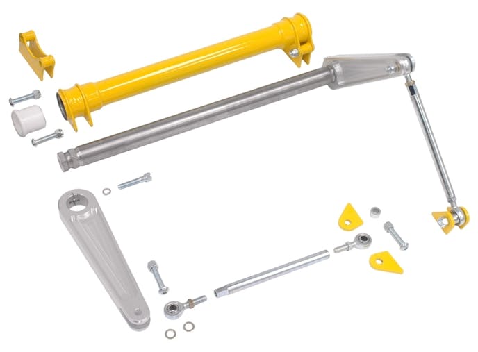 The pivoting anti-roll bar shaft is connected to a pair of link arms that are typically fabricated from billet aluminum or chromoly steel. Some manufacturers weld the chromoly arms directly to the ARB shaft which creates a very strong and rigid setup. The only downside to welding the arms directly to the shaft is that it makes servicing the anti-roll bar nearly impossible should a bearing failure occur.
