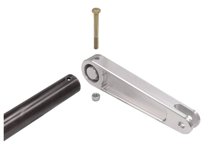 Another way to connect the arms of an anti-roll bar is a thru-bolted construction. Chassisworks offers an anti-roll bar setup where billet CNC aluminum arms are connected to the ARB shaft using bolts. A key feature to this thru-bolted design is the addition of the aluminum stud that fits inside of the chromoly tube. This added feature allows the user to tighten down the anti-roll bar arms onto the hollow tube without crushing or deforming the tube.