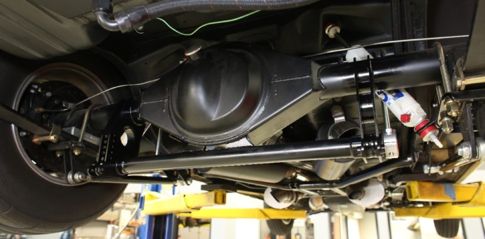 The mounting location of the anti-roll bar can also be an important consideration since a chassis-mounted ARB may limit the routing of the exhaust system above the differential. If the car is going to have full exhaust, then a housing-mounted ARB would be a good option since it offers the space above the differential housing. While the differential-mounted anti-roll bar offers more clearance for exhaust system routing, it does make it more difficult to jack up the rear end of the vehicle. The trade-off on the differential-mounted ARB is the installation can be harder, as it requires out-of-position welding if the differential housing is still on the car.