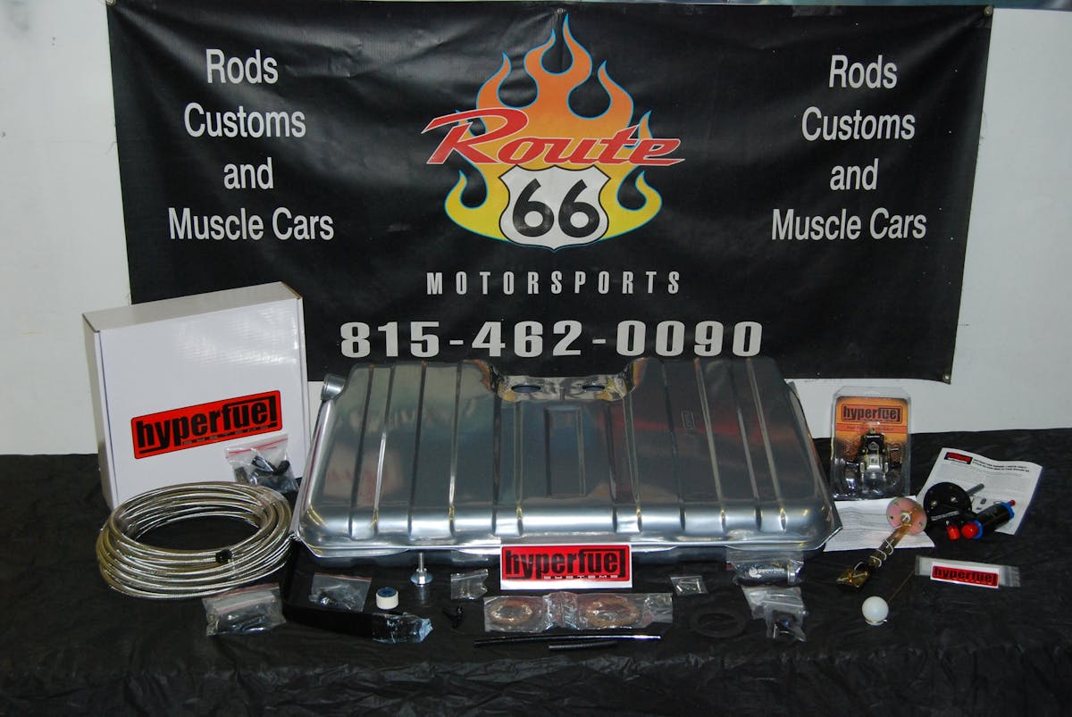 If your classic’s fuel tank is in need of replacing, or you are upgrading to EFI, the Hyperfuel kits come with everything you need, including a new tank, sending unit, pump, pre-filter, and if applicable, straps.