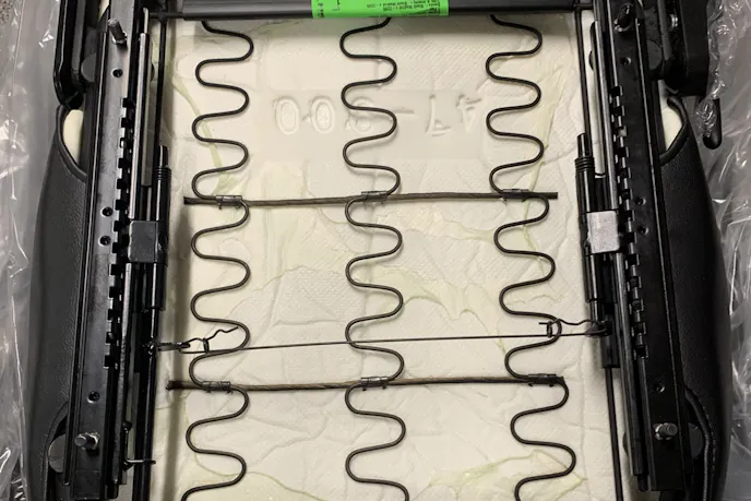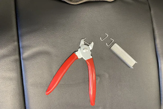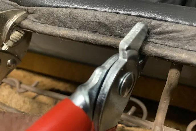 Anyone who has worked with upholstery before is likely familiar with hog rings. These trusty metal clips have been holding the skins on our rides since the days of horse and buggies. To remove the old seat skin, simply cut the old hog rings, then peel the old upholstery off the seat frames. To install the new skins, TMI offers new hog rings and the necessary pliers to crimp them into place.