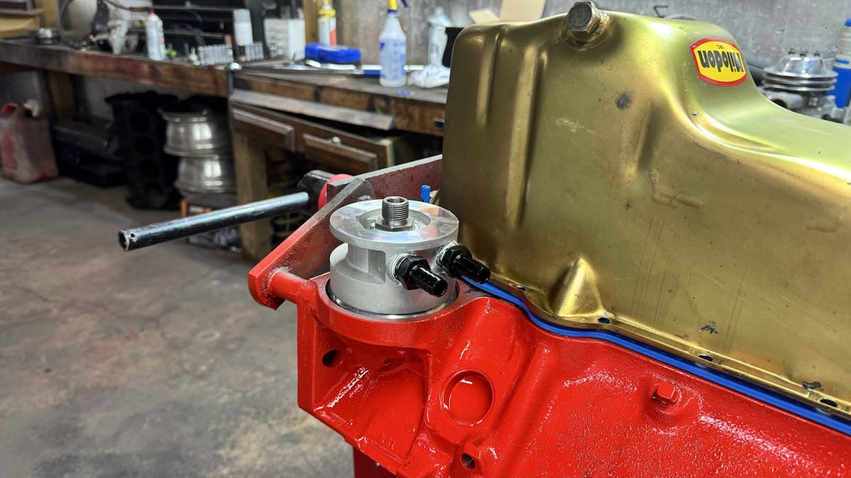 When building an engine you plan to use long-term, there are two factors to consider. The first is making maintenance as headache-free as possible. As for Project Mighty Mouse, this means adapting our 327 small-block Chevy to run a spin-on type of oil filter instead of the messy canister-style oil filter it drove off the showroom floor with back in 1962. The other factor for a long, healthy relationship with your engine is keeping the oil cool. More than just a canister to spin-on filter conversion, we will also be upgrading our engine’s oiling system to include an external oil cooler.