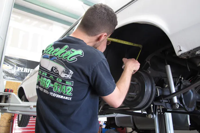 We were hanging out with Aaron Linquist at Ratchet Garage in Lakeland, Florida, when the discussion turned to measuring for oversized wheels and tires. As luck would have it, there was a 1970 Nova on the rack that we could use to show you guys exactly how to measure for upsizing your wheel and tire package on the rear of your ride. What’s more, we are going to show you how to find all these measurements with nothing more than a straight-edge and a tape measure.