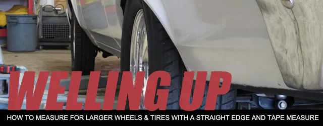 …If you have a straight edge and a tape measure you can find out. – Aaron Lindquist, Ratchet GarageWhen measuring to find your available area, there are several variables that come into play that will affect tire clearance. The most important one is ride height. Why measure the car for tire clearance, purchase the tires and wheels, and then decide to lower the car? If you are even contemplating lowering the car, do it before you purchase new tires and wheels. Let’s say for example, that you have an early Camaro that is at factory ride height. With this stance, you might be able to accommodate an upsized 255/50R16 tire on a 16×8 wheel. After you install those new wheels and tires, lower the car by 1-inch. Now, the available area you had is decreased, and your combination will likely no longer fit your car.