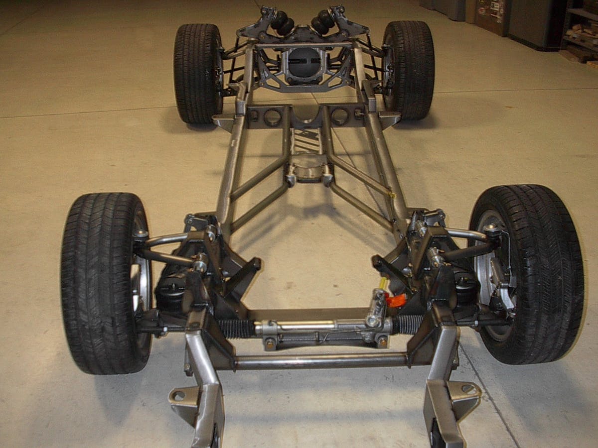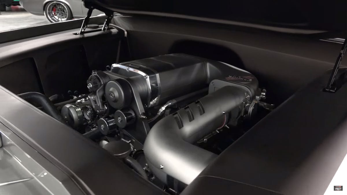 The whole build sits squarely on a Roadster Shop chassis with an independent front and rear suspension that uses air bags all around. The engine is an LS7 with a Kenne Bell supercharger connected to a Bowler Transmissions 4L80E automatic, and the rearend is a Roadster Shop housing with 3.73 Strange gearing.